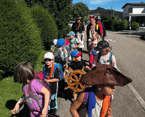 Die Biber-Piratencrew hat sich mit Knabberi auf der Insel Willi getroffen. Um richtige Piraten zu werden, müssen einige Challenges erfüllt werden. Diese forderten uns richtig, doch am Ende konnten wir alle bestehen und erhielten 3 Teile einer Schatzkarte. Zusammengesetzt und mit einer guten Portion Orientierung machten wir uns auf den Weg zum Schatz. Das ist natürlich für die Piratencrew ein Kinderspiel und auch Knabberi konnte so einiges lernen. Den Rückweg konnten wir mit einem Schiffli über das Mühlebächli hinter uns lassen. Leider ist dies nach einger Zeit gesunken und wir mussten den letzten Teil bis zum Piratenversteck zu Fuss zurücklegen. Nun heisst es bei uns: Arrr und bis zum nächsten Mal!