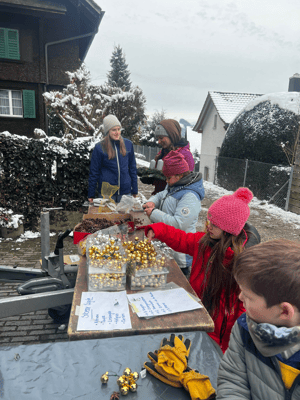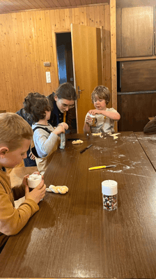 Die Waldweihnacht stand dieses Jahr ganz im Thema Sinne. So haben wir am Nachmittag alle unsere Sinne gebraucht um ein paar coole Spiele zu spielen, Kärtli mit unseren Fingern zu basteln, Teig zu kneten und zu leckeren kreativen Grittibänzen zu formen und auch um ganz viel Vogelfutterkeckse zu machen. Am Abend begleiteten uns Eltern und Geschwister in den Wald. Unterwegs gab es ein Konzert für die Ohren, ganz viel Vertrauen beim blinden Wurm und Teamwork mit dem Tausendfüssler Santabar. Im Pavillon angekommen gab es leckere Wienerli, Punch und Tee. Den Abend abrunden konnten wir mit einigen schönen Weihnachtslieder um das glitzernde Feuer.