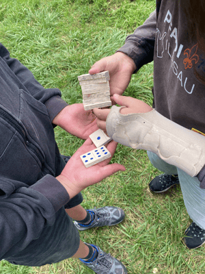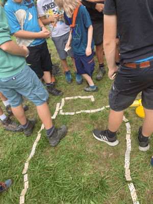 Der diesjährige Übertritt startet mit einer freudigen Verkündung: Die Patrouille Tiger wird neu gegründet und somit hat die Pfadistufe wieder 5 Patrouillen am Start! Voller Freude können wir dann auch unsere 8 Neulinge in Empfang nehmen und wie: Diese kommen uns auf einer riesigen Rutsche entgegen und können ihre Urkunden in Empfang nehmen. Heute kommt das Abenteuer Schlag auf Schlag! Ein Notar zeigt uns das Testament von Franz Carl Weber, wir erben seinen Spiele-Laden. Und die Bedingungen, damit wir das Erbe antreten dürfen: Wir müssen alle Lieblingsspiele von Franz spielen und bestehen. Das erklärt uns sein Butler, der uns dabei begleiten wird. Starten tun wir mit dem Lieblingsspiel aus Franz' Kindheit, dem Domino. Das ist für uns keine allzu grosse Herausforderung und wir meistern diese mit Bravour. Anschliessend bauen wir Schiffe für die Domino-Steine, um wieder aus dem Spiel zu kommen. Ein leckeres Zvieri und eine kleine Abkühlung dürfen dabei nicht fehlen.