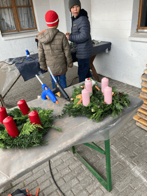 Auch dieses Jahr haben wir wieder unsere Adventsaktion gestartet. Dabei können wir auf die Unterstützung von vielen von euch zählen, denn wir können wieder über 100 Advents- und Türkränze binden, gestalten und verkaufen. Während am Samstag die Leiter und einige Pios tatkräftig Zweige zurechtschneiden, Kränze binden und Kerzen in die Kränze stecken, gilt der Sonntag ganz der Gestaltung. Dabei trotzen wir dieses Jahr den bitterkalten Temperaturen und verzieren viele Tür- und Adventskränze mit Herzblut. Die restliche Zeit verbringen wir mit Spiel und Spass. Vielen Dank, an alle die mitgeholfen haben und an alle, welche uns mit einem Kranz-Kauf unterstützt haben!