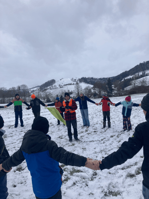 Das nächste Spiel kommt nach einer kurzen Pause, aber es startet keineswegs gemächlich: Wir sollen die Rennstrecken von Mario-Kart unsicher machen. Die Streckenposten führen uns direkt ein und schon geht es los mit der Wahl des Rennwagens. Anschliessend spielen die Gruppen verschiedene Spiele, damit sie die gewonnenen Punkte auf unserer Rennstrecke einsetzen können. Doch Vorsicht: Auch bei uns lassen die Items und ihre teilweise grossen Auswirkungen nicht auf sich warten! Als kleine Zwischenstärkung geniessen wir heissen Punsch und wir versuchen uns an Pancakes, die mit einiger Übung doch wie vom Profi aussehen. Für den letzten Teil der Strecke stürzen wir uns dann noch selbst in den Schnee und schlussendlich können wir alle die Ziellinie überqueren.
